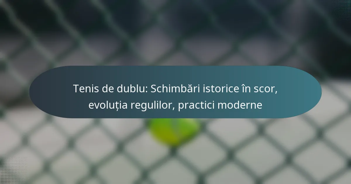 Tenisul de dublu a cunoscut o evoluție remarcabilă în ceea ce privește punctajul și regulile, reflectând adaptabilitatea sportului și nevoia de a îmbunătăți jocul. Schimbări cheie, cum ar fi introducerea sistemului de punctaj fără avantaj și a tiebreak-urilor, au transformat formatele tradiționale, făcând meciurile mai dinamice și captivante. Înțelegerea acestor schimbări istorice oferă o perspectivă valoroasă asupra strategiilor și practicilor care definesc tenisul de dublu modern.