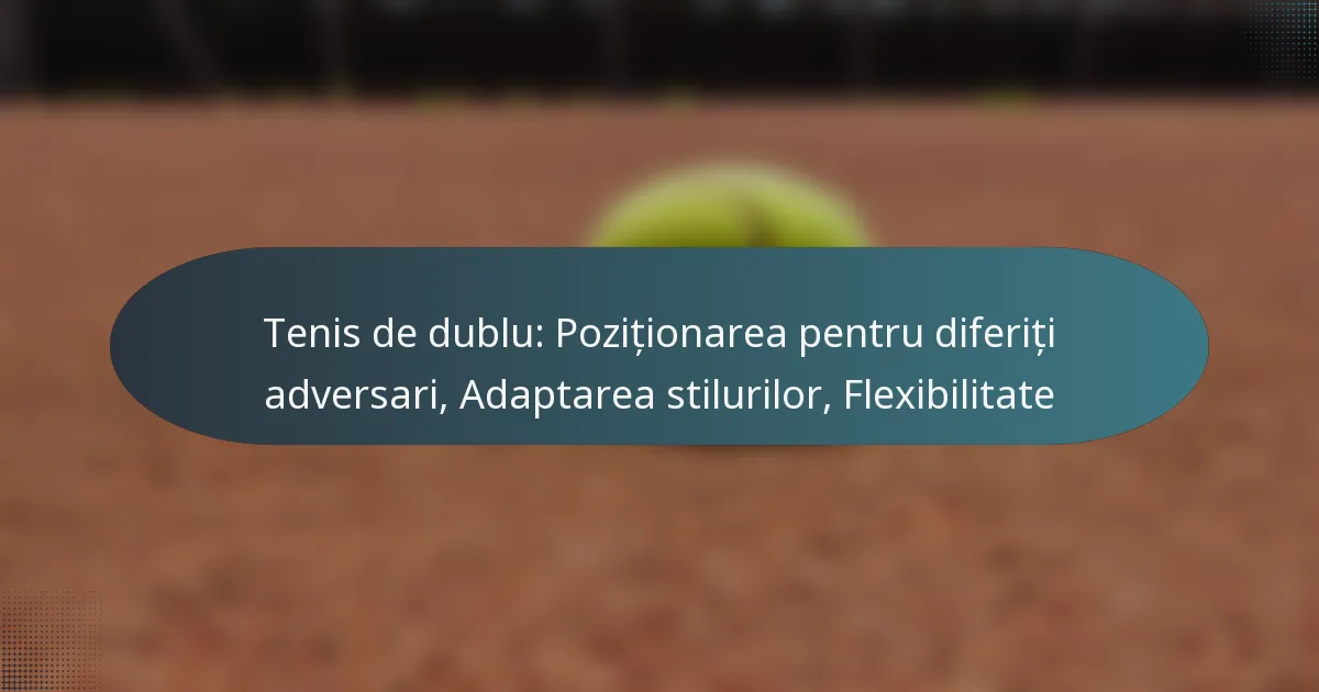 În tenisul de dublu, poziționarea eficientă este crucială pentru maximizarea performanței echipei împotriva diferitelor adversari. Prin analizarea punctelor forte și a slăbiciunilor atât ale partenerului, cât și ale echipei adverse, poți adapta strategiile tale și îmbunătăți jocul. Flexibilitatea în mișcare și adaptabilitatea mentală permit jucătorilor să-și ajusteze poziționarea și tacticile în timp real, asigurându-le un avantaj competitiv pe teren.