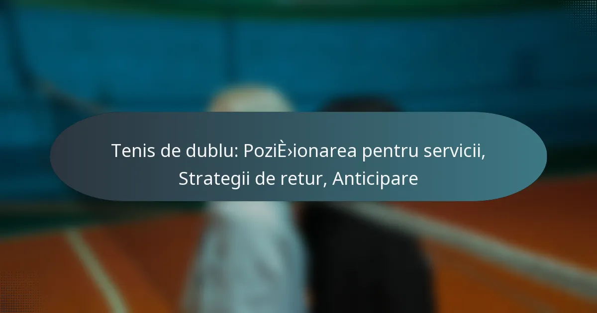 Tenisul de dublu necesită o înțelegere profundă a poziționării, în special în timpul serviciilor și retururilor, pentru a acoperi eficient terenul și a exercita presiune asupra adversarilor. Prin stăpânirea strategiilor de retur și îmbunătățirea abilităților de anticipare, jucătorii pot îmbunătăți semnificativ performanța lor și pot profita de slăbiciunile adversarilor. Comunicația eficientă și adaptabilitatea sunt esențiale pentru succesul în acest format dinamic al jocului.